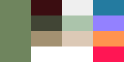 The particular shade of green I chose, as well as our secondary palette of off-whites, off-blacks, and accent colours, all tend towards the warm, with undertones of reds and oranges. We wanted our palette to evoke connection, both to other people and to nature, so I emphasised earthy tones.